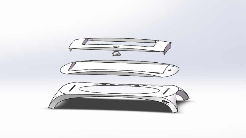 由于曲面造型金屬加工有較高的難度與工藝成本,我們的曲面手寫(xiě)板不考慮用金屬加工來(lái)做.考慮到3D打印的靈活性,曲面手寫(xiě)板主要采用3D打印工藝,將整個(gè)手寫(xiě)板分為三塊進(jìn)行分別打印,依靠摩擦進(jìn)行緊固.