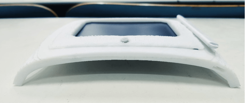 首先對(duì)于我們組第一塊手寫(xiě)板來(lái)講,由于曲面的存在,金屬加工的難度較大,所以我們組成員決定用3D打印來(lái)制造第一塊手寫(xiě)板的基體、按鈕以及蓋板.