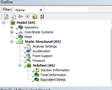之后我們將模型的四個(gè)支點(diǎn)進(jìn)行固定,然后對(duì)整個(gè)模型施加重力,重力加速度設(shè)為9.8m/,再對(duì)底座的上表面施加3000Pa的壓力,看看在模型受壓力和重力的情況下會(huì)不會(huì)發(fā)生大變形能不能承受住這么大的壓力.