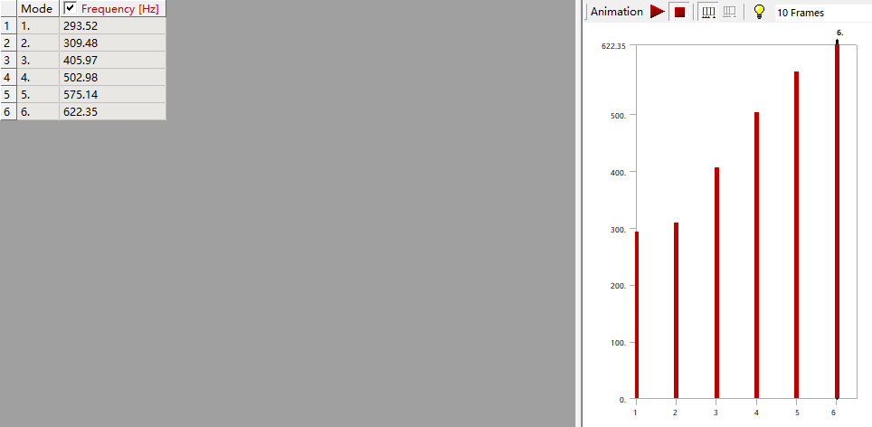 將模型的四個(gè)支點(diǎn)固定后,對(duì)整個(gè)模型進(jìn)行模態(tài)分析,計(jì)算出手寫(xiě)板的固有頻率,通過(guò)這個(gè)基礎(chǔ),再向手寫(xiě)板平面上施加頻率為1—5Hz、大小為30N的諧載荷,觀察形變.用以模擬人在手寫(xiě)板上寫(xiě)字的時(shí)候,手寫(xiě)板的變形情況.