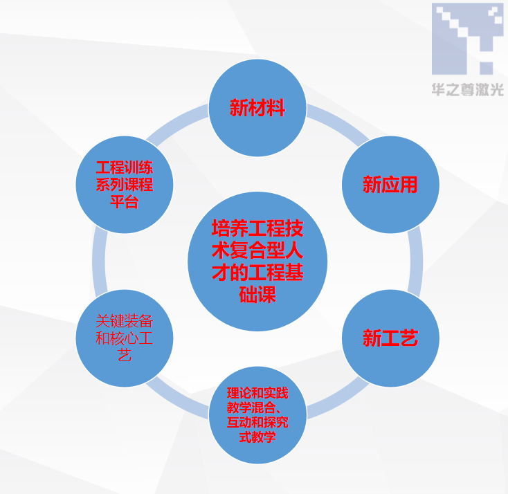 以特種加工-激光精密加工對特定功能新材料的制造為基本出發(fā)點(diǎn),牽引其它制造方法于整個產(chǎn)品中;教學(xué)過程與制造方法相結(jié)合的學(xué)習(xí)模式;
