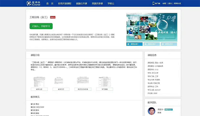 浙江大學(xué)傅建中老師【教授、博導(dǎo)、國家級(jí)教學(xué)示范中心主任、中組部“萬人計(jì)劃”創(chuàng)新創(chuàng)業(yè)人才,國家科技部科技創(chuàng)新創(chuàng)業(yè)領(lǐng)軍人才,浙江省優(yōu)秀科技工作者】主持的國家級(jí)精品資源共享課“工程訓(xùn)練(金工)”上線“愛課程網(wǎng)”累計(jì)已有近50萬學(xué)習(xí)人數(shù)。