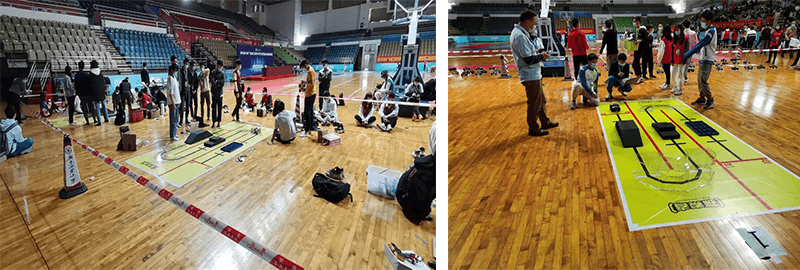 在智能終端配送機(jī)器人比賽現(xiàn)場,參賽隊員將機(jī)器人調(diào)試后進(jìn)行比賽,隨著裁判宣布“比賽開始”后,參賽隊員拿起任務(wù)碼對應(yīng)機(jī)器人掃描區(qū),機(jī)器人掃描二維碼獲取收貨點信息,掃描成功,機(jī)器人對應(yīng)倉門打開,裝入物料后,關(guān)上倉門,機(jī)器人前往任務(wù)要求地收貨點。配送過程中機(jī)器人自主規(guī)劃路徑、自動識別交通燈、障礙等,在規(guī)定時間內(nèi),實現(xiàn)物料的自主運輸和正確投寄。