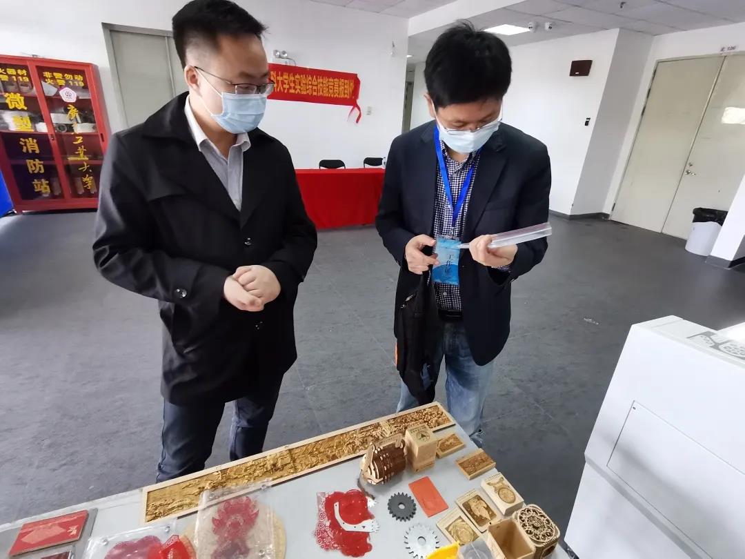 向參觀者演示機(jī)器切割剪紙。華之尊激光設(shè)備光斑極細(xì),激光與卡紙的接觸面積極小,從而在切割過程中不會產(chǎn)生發(fā)黑、發(fā)黃、起火及碳化等效果,切割R弧可達(dá)0.2mm,切縫小于0.03mm,能將平面圖案通過華之尊激光精確切割出來。