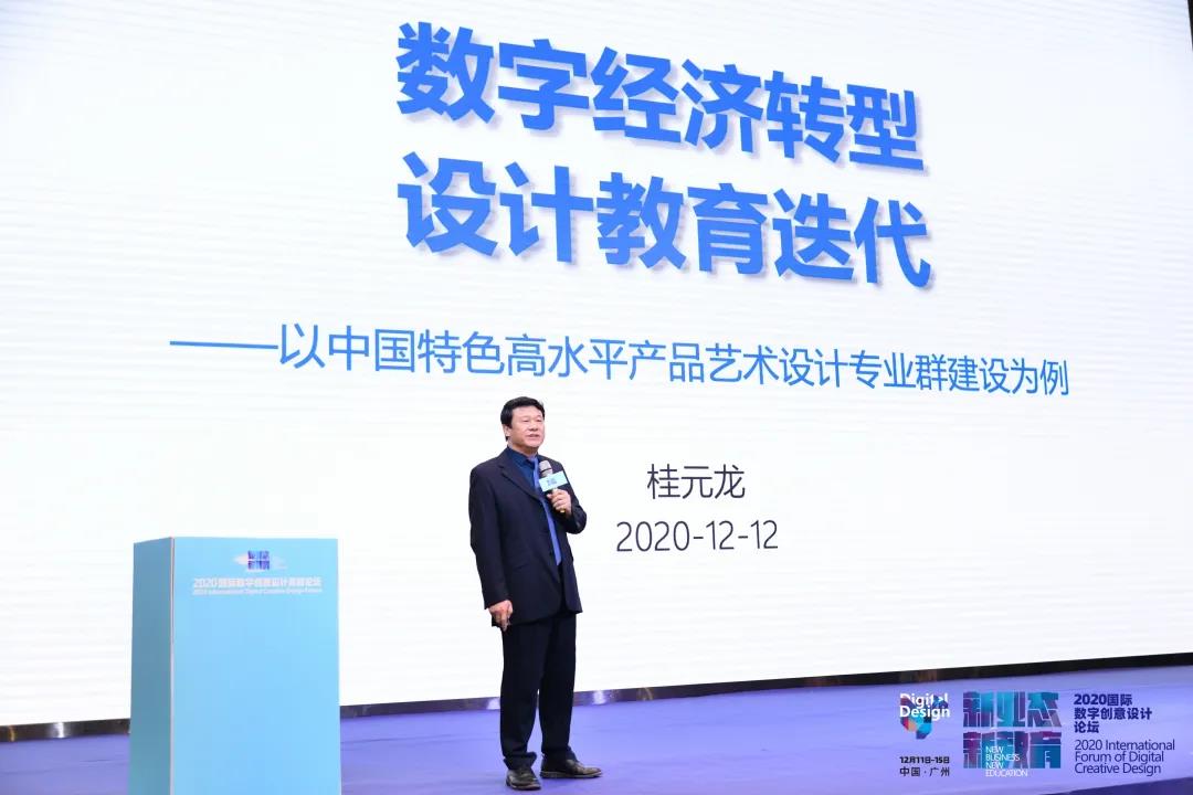 分享會上,廣東輕工職業(yè)技術學院藝術設計學院院長、教育部職業(yè)院校藝術設計類專業(yè)教學指導委員會產品設計專門委員會主任委員桂元龍以“數(shù)字經濟轉型,設計教育迭代”為主題作演講,探討數(shù)字經濟時代下職業(yè)教育新方向。