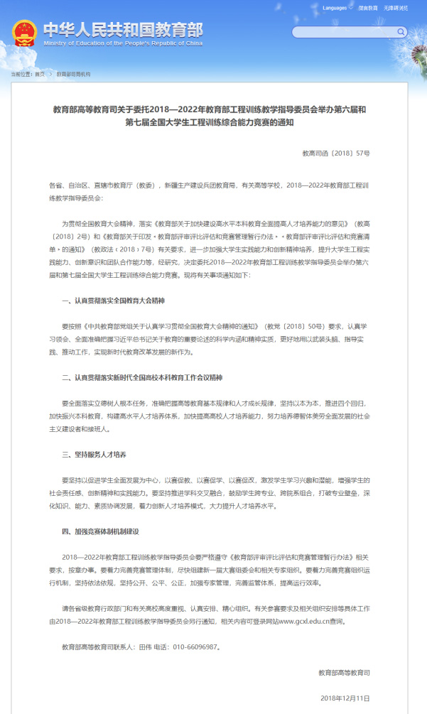 中國(guó)大學(xué)生工程實(shí)踐與創(chuàng)新能力大賽是教育部高等教育司發(fā)文舉辦的全國(guó)性大學(xué)生科技創(chuàng)新實(shí)踐競(jìng)賽活動(dòng),是基于國(guó)內(nèi)各高校綜合性工程訓(xùn)練教學(xué)平臺(tái),為深化實(shí)驗(yàn)教學(xué)改革,提升大學(xué)生工程創(chuàng)新意識(shí)、實(shí)踐能力和團(tuán)隊(duì)合作精神,促進(jìn)創(chuàng)新人才培養(yǎng)而開(kāi)展的一項(xiàng)公益性科技創(chuàng)新實(shí)踐活動(dòng)。