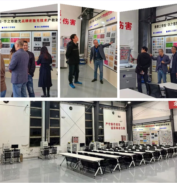 在會議報告結(jié)束后,與會人員齊聚一堂,共同前往淮陰工學院-華之尊激光高精密激光技術(shù)產(chǎn)教融合創(chuàng)新實驗室進行實地參觀。參觀過程中,與會人員對實驗室內(nèi)先進的激光設(shè)備和豐富的激光加工樣品文化墻贊不絕口。廣州華之尊光電科技有限公司總經(jīng)理秦斌親自為大家講解了各種激光設(shè)備的工作原理和應用場景,無論是新一代顯示技術(shù)/材料的制造,還是3C材料的加工,亦或是生物醫(yī)療器械的生產(chǎn),華之尊激光都以其卓越的技術(shù)和優(yōu)質(zhì)的產(chǎn)品贏得了參觀者們的廣泛贊譽。通過近距離觀察和互動體驗,與會者們深刻感受到了激光技術(shù)在現(xiàn)代制造業(yè)中的重要地位和廣闊前景。